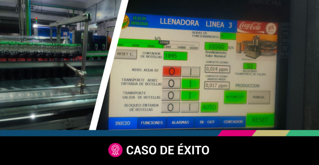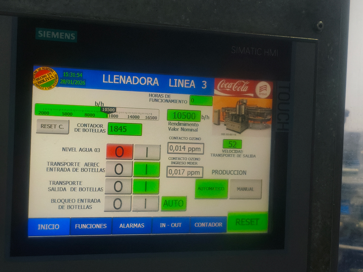 Como resultado, el rinser-llenadora quedó operando de forma eficiente y estable, alcanzando una velocidad nominal de 10.500 botellas por hora, con evidencia de que el equipo también puede operar a 12.000 bph. Esta validación confirmó la correcta adaptación al nuevo formato, manteniendo parámetros de operación confiables y consistentes.